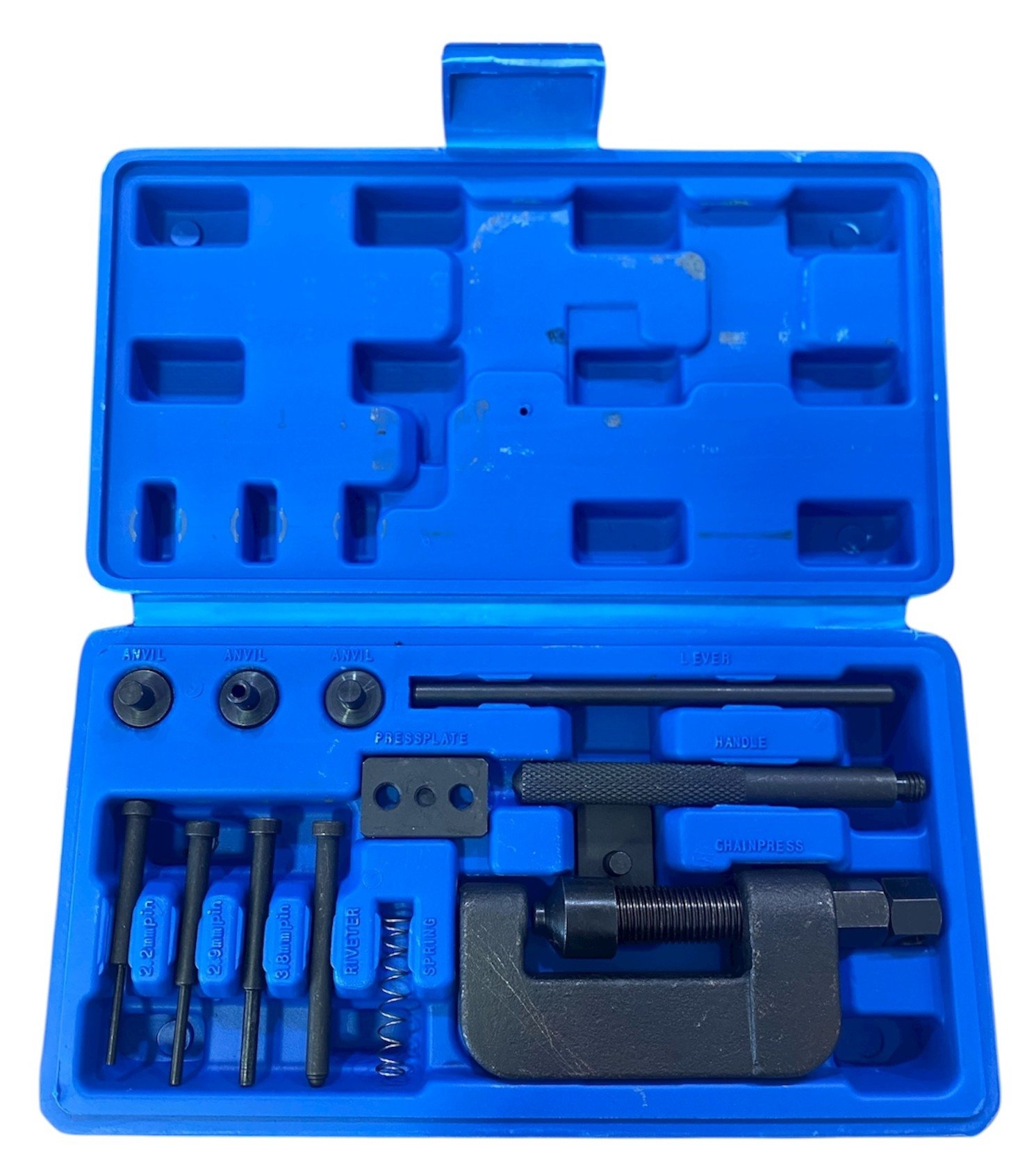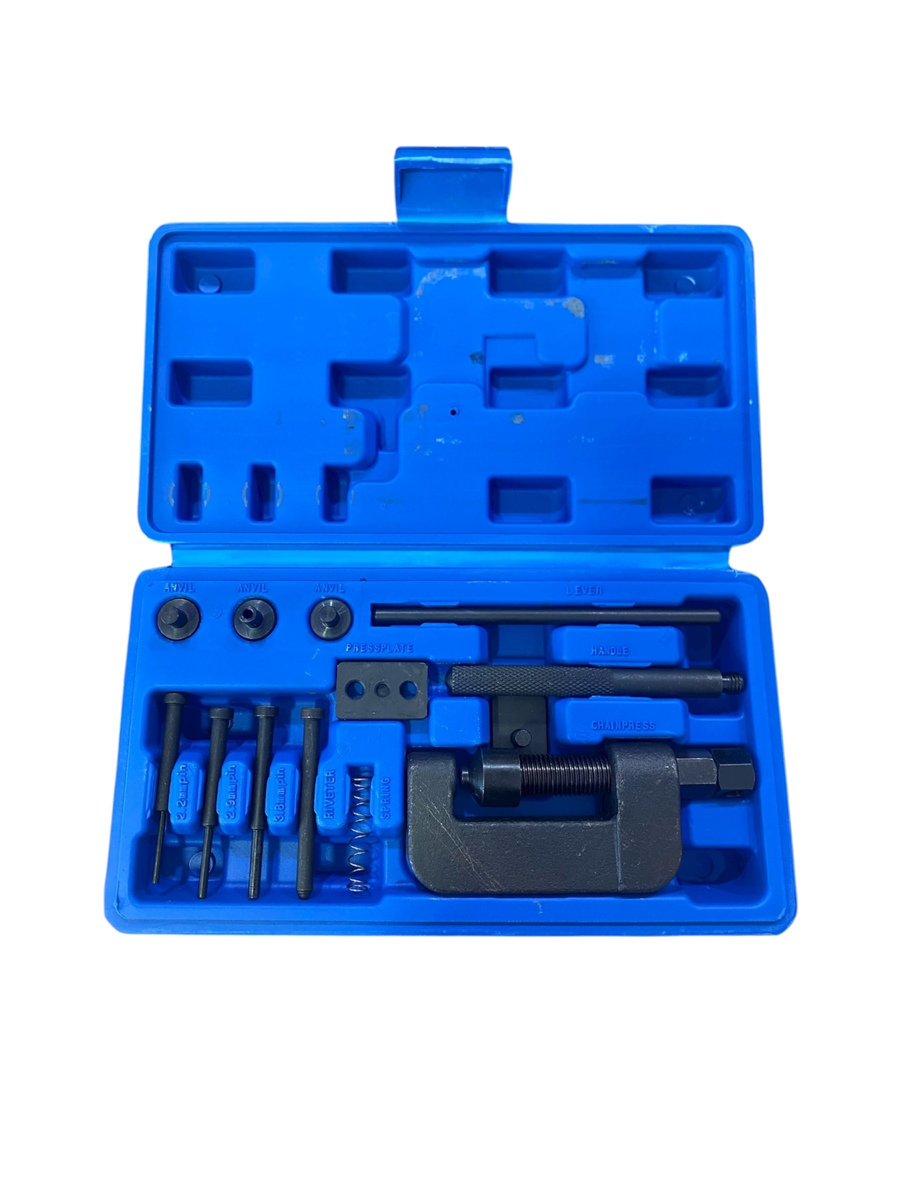 Περιλαμβάνει 3 διαφορετικά μεγέθη καρφιτσών πίεσης (2.2mm, 2.9mm και 3.8mm), καλύπτοντας αλυσίδες από 35 έως 630.