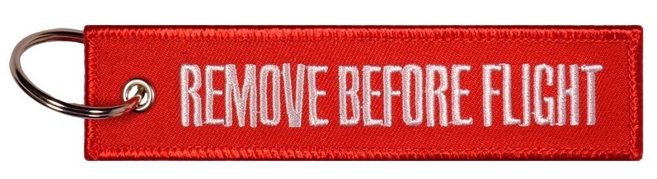 Μπρελόκ υφασμάτινο με κεντητό λογότυπο REMOVE BEFORE FLIGHT και στις δύο όψεις.