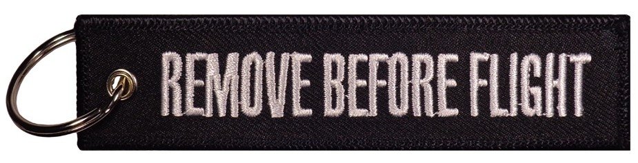 • Μπρελόκ υφασμάτινο με κεντητό λογότυπο REMOVE BEFORE FLIGHT και στις δύο όψεις.