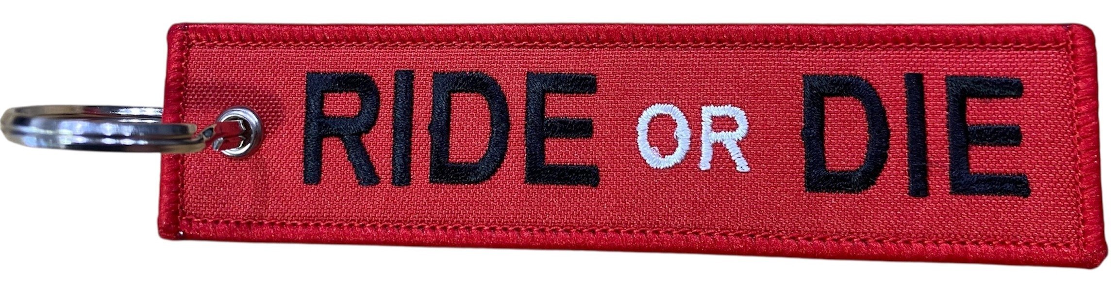 Μπρελόκ υφασμάτινο με κεντητό λογότυπο RIDE OR DIE και στις δύο όψεις.