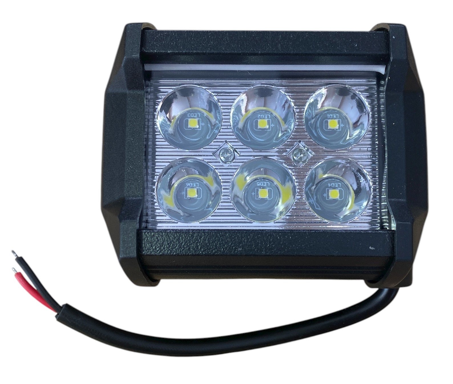 Αδιάβροχος προβολέας αυτοκινήτου LED τετράγωνος με ισχύ 18W και 6 LED με ψυχρό λευκό φωτισμό. Το περίβλημα του είναι από αλουμίνιο και διαθέτει σύστημα που προστατεύει τον προβολέα ακόμα και αν συνδεθεί με λάθος πολικότητα. Μπορεί να λειτουργήσει σε τάσεις 12V και 24V. Η υψηλή του φωτεινότητα τον καθιστούν ιδανικό για διαδρομές off-road, φορτηγά, τρακτέρ, περονοφόρα οχήματα, εσκαφείς, επιβατηγά αυτοκίνητα, ATV κ.α. Κατάλληλος και για ομίχλη ενώ η αντοχή του ξεπερνά τις 30000 ώρες ζωής. Περιλαμβάνονται βάσεις και βίδες τοποθέτησης.