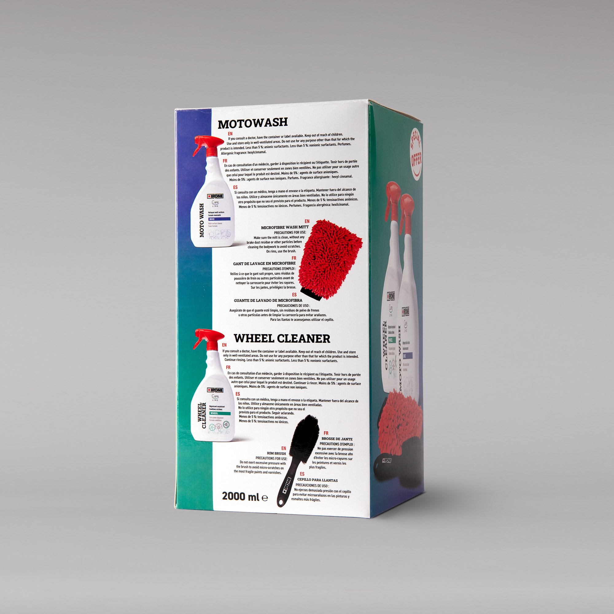Σχεδιασμένο για αναβάτες που απαιτούν αποτελεσματικότητα, το κιτ περιλαμβάνει δύο υψηλής απόδοσης προϊόντα, το MOTO WASH και το WHEEL CLEANER — δύο από τα κορυφαία και δοκιμασμένα best-sellers της σειράς Careline — καθώς και δύο απαραίτητα νέα αξεσουάρ, που διατηρούν τη μοτοσυκλέτα πεντακάθαρη με ελάχιστο κόπο.