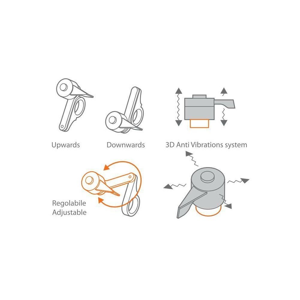 - 5 αποστάτες από EPDM λάστιχο για προσαρμογή του βραχίονα σε τιμόνια διαφορετικού πάχους, οι οποίοι λειτουργούν και ως επένδυση για προστασία του σκελετού από τριβή, εκδορές, γρατζουνιές, κ.ο.κ. κατά την εφαρμογή της.