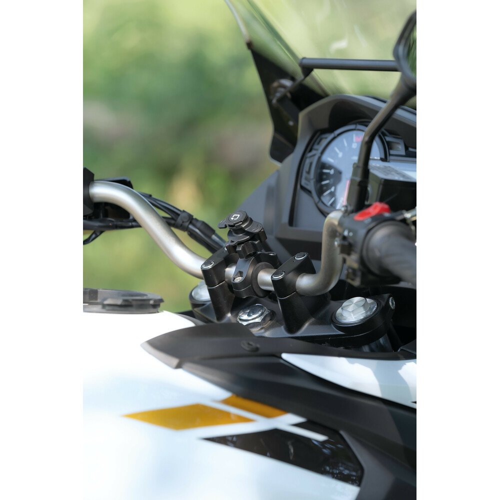 Βάση στήριξης κινητού Donut από την σειρά Titan Optiline της εταιρίας Lampa, ιταλικής προέλευσης, κατασκευασμένη από υψηλής ποιότητας χυτοπρεσαριστό ατσάλι πάχους 20 mm σε μαύρο χρώμα, η οποία μπορεί να συνδυαστεί με όλες τις θήκες ή αντάπτορες κινητού της σειράς Optiline. Η βάση στήριξης είναι universal εφαρμογής και τοποθετείται στο τιμόνι της μηχανής ή του ποδηλάτου, καθώς και σε οποιονδήποτε στρογγυλό σωλήνα με διάμετρο από 22 mm έως 32 mm. Διαθέτει επένδυση από EPDM λάστιχο στο σημείο επαφής του βραχίονα με τον σκελετό του οχήματος για προστασία από τριβή, εκδορές, γρατζουνιές, κ.ο.κ. κατά την εφαρμογή της. Ιδανικό προϊόν για να μπορείτε να μεταφέρετε με ασφάλεια το smartphone σας με την μηχανή ή το ποδήλατό σας σε κάθε προορισμό. Κατάλληλη για να στηρίζει την συσκευή σας, ώστε να μπορείτε να κάνετε χρήση του gps, να λαμβάνετε κλήσεις και να έχετε άμεση πρόσβαση στο κινητό σας κατά την διαδρομή! Απολαύστε το ταξίδι σας ή την καθημερινή διαδρομή μέσα στην πόλη με άνεση και εργονομία!