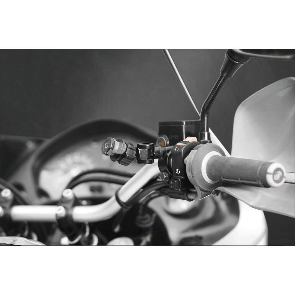 Βιδωτή βάση στήριξης κινητού M6 Pro από την σειρά Titan Optiline της εταιρίας Lampa, ιταλικής προέλευσης, κατασκευασμένη από υψηλής ποιότητας χυτοπρεσαριστό ατσάλι σε μαύρο χρώμα, η οποία μπορεί να συνδυαστεί με όλες τις θήκες ή αντάπτορες κινητού της σειράς Optiline. Η βάση στήριξης είναι universal εφαρμογής, διαθέτει ρυθμιζόμενο λαιμό για καλύτερη γωνία κλίσης και τοποθετείται στις βίδες στα καβαλέτα ή στους διακόπτες στο τιμόνι της μηχανής, αρκεί η διάμετρος του σπειρώματος των βιδών να είναι M6. Ιδανικό προϊόν για να μπορείτε να μεταφέρετε με ασφάλεια το smartphone σας με την μηχανή σας σε κάθε προορισμό. Κατάλληλη για να στηρίζει την συσκευή σας, ώστε να μπορείτε να κάνετε χρήση του gps, να λαμβάνετε κλήσεις και να έχετε άμεση πρόσβαση στο κινητό σας κατά την διαδρομή! Απολαύστε το ταξίδι σας ή την καθημερινή διαδρομή μέσα στην πόλη με άνεση και εργονομία!